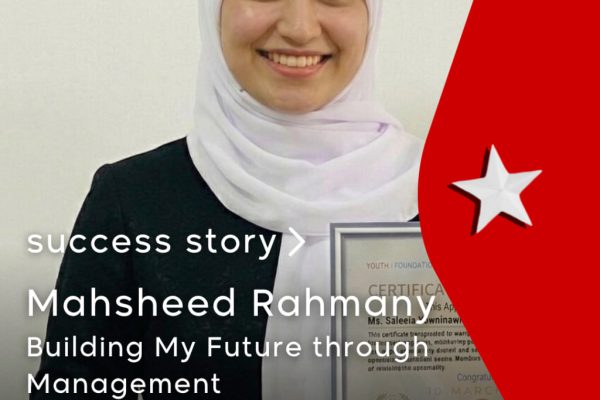 داستان موفقیتساختن آیندهام در مسیر مدیریتساختن آیندهام در مسیر مدیریت نام من مهشید رحمانی است؛ دختری از افغانستان که اجازه نمیدهد رویاهایش پشت درهای بسته بماند. من به عنوان دانشجوی مدیریت در انستیتوت جوانان آموختهام که حتی وقتی دنیای بیرون ساکت به نظر میرسد، صدای درونی من برای رشد و رهبری باید بلند باقی بماند. سفر من تنها برای کسب […]